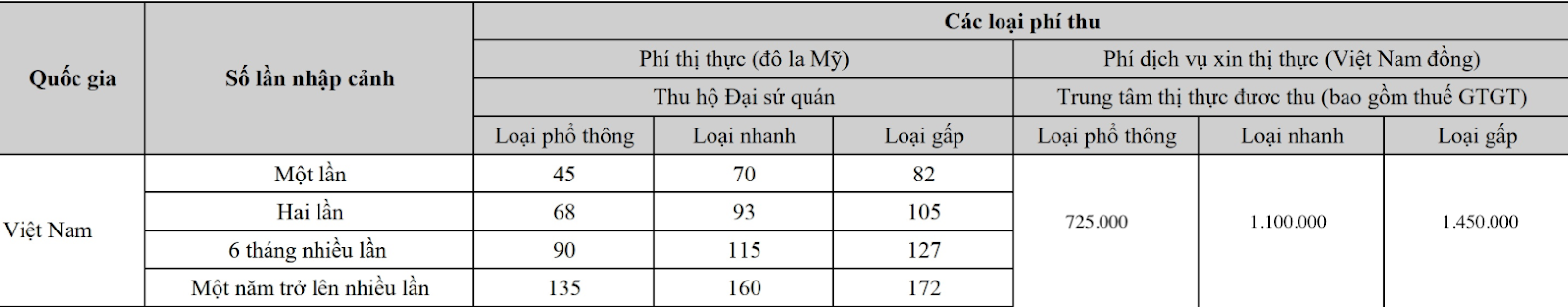 Phí thị thực được trung tâm thu hộ cho Đại sứ quán Trung Quốc. Phí thị thực sẽ được thanh toán bằng đồng Đô la Mỹ khi quý khách đến Trung tâm nhận kết quả. Số tiền thực tế phải nộp tùy thuộc vào việc phê duyệt thị thực của Đại sứ quán Trung Quốc.